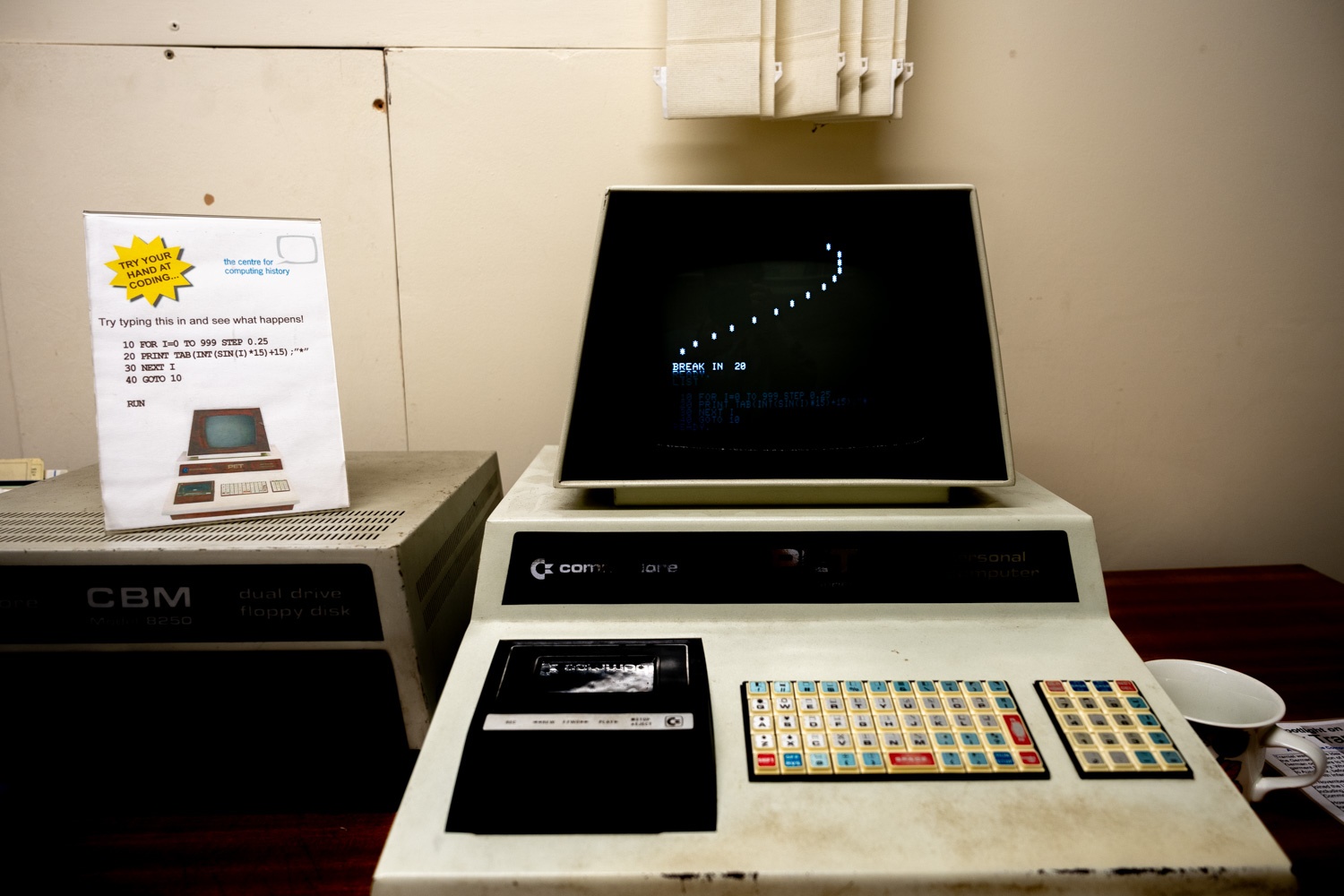 1970年代のオフィスを再現したブースがあり、当時のマシンで BASIC を書いて動かすことができる。