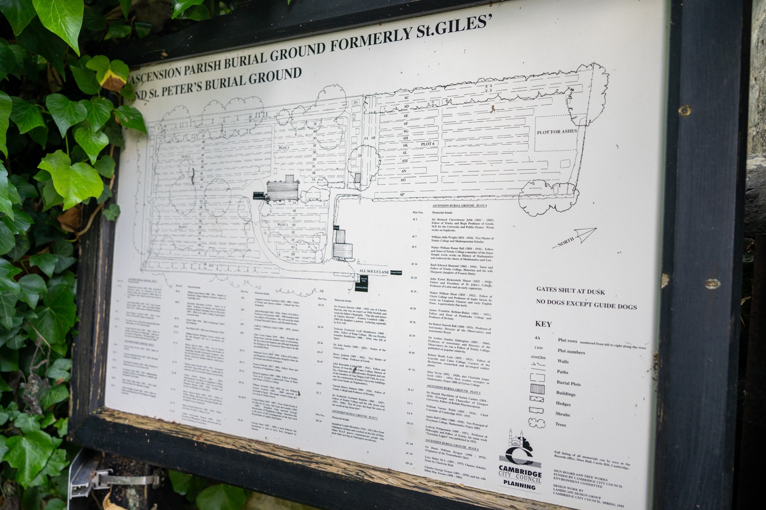 墓地には1,500基の墓があり、ケンブリッジ大学に縁のある学者が多く埋葬されているようだった。
